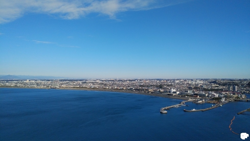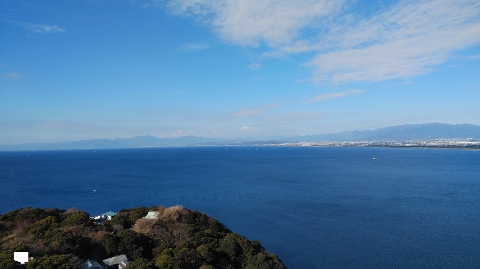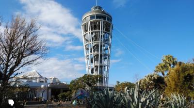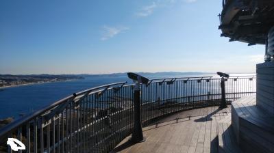 江ノ島駅から徒歩25分くらいのところにある展望灯台。サムエル・コッキング苑の敷地内にある。海抜100メートルほどのところに展望室があり、海岸の風景から天気が良ければ富士山も見られる。訪れたときは霞で消えかかった富士山をかろうじて見ることができた。