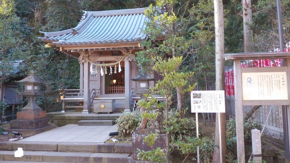 江ノ島駅から徒歩20分くらいのところにある神社。創建年代は不詳、1873年に天王社から八坂神社に改称した。