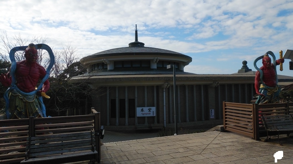 創建が新しいためか敷地内には立派な本堂が設けられている。もともとは旅館があった場所だそう。敷地内もよく整備されており、入り口付近の2体の仁王像も印象的。堂内の不動明王像など見どころがある寺院だった。