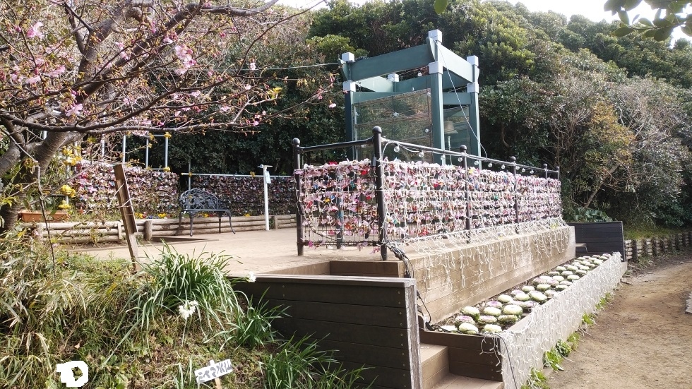 分岐点から100メートルほど進むと、龍恋の鐘があり広大な海を眺められるスポットになっていた。シンボルの鐘の近くに設置された南京錠の数がたくさんあり、多くの人が訪れていると感じた。