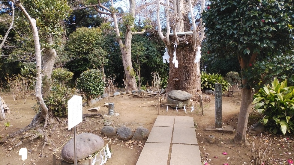 江島神社奥津宮の社殿の手前に細い参道があり、御神木の手前側に亀の甲羅のような形をした石が祀られていた。亀の甲羅のように割れ目が刻まれているところが貴重だと感じた。江戸時代後期に奉納されたもののようで、歴史的にも貴重だと感じた。