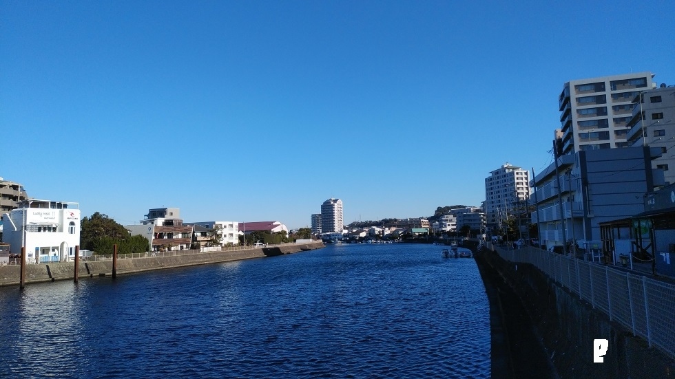 江ノ島駅を下車すると脇を流れており、江ノ島が見えるあたりで相模湾に注いでいた。河口付近は川幅も広く、流れも穏やか。正面に江ノ島を見ることができ、川の江ノ島の風景を楽しむことができた。