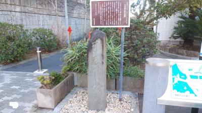 訪れた場所は江ノ島駅から徒歩3分くらいのところにあり、1999年に道路工事中の地下から発掘されたものだという。石碑に刻まれた文字は崩し字で何が書かれているかわからなかったが、歴史は感じられた。