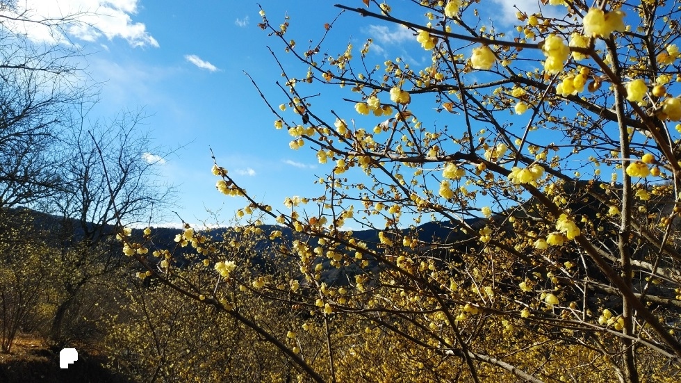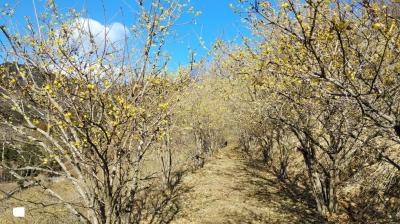 2005年から植樹を監視したようでまだ木々は若い印象。まだ寒い時期だが、一面の黄色い花はほのかな甘い香りとともに春に向けての気分が味わえた。