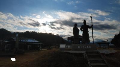 平治の乱で敗れた源頼朝の流刑の地とされているエリアで、園内には源頼朝と北条政子夫妻のブロンズ像が設置されていた。