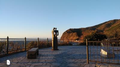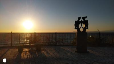 土肥温泉バス停から徒歩15分くらいのところにあるスポット。土肥温泉と小土肥温泉の間にある。岬といってもあまり海につき出てはおらず、また高さもあまりないので街並みの眺望はあまりなかった。ちょうど夕日が沈む時間帯だったこともあり、海岸線に沈む夕日の景色を楽しむことができた。