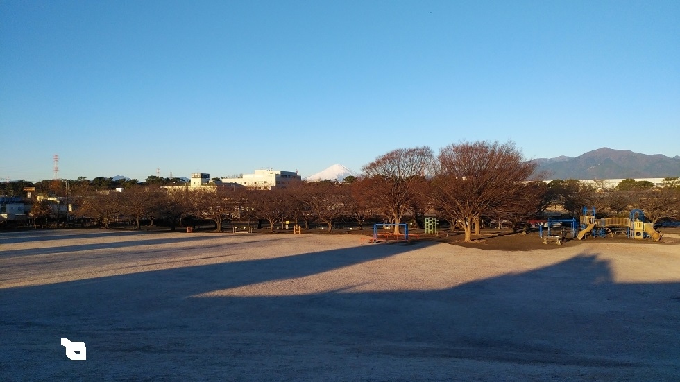 小さな丘が作られており、晴れた冬の朝、遠くに富士山を眺めることができた。地元の人の散歩コースになっている印象を受けた。