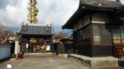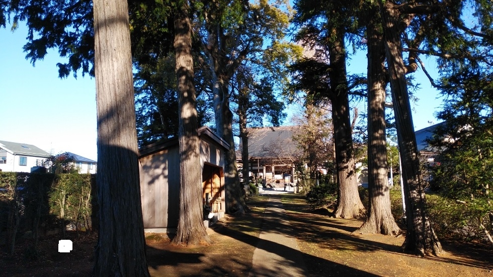県道の反対側に山門があり、背後には樹齢の高い杉の木もあり、歴史的な雰囲気が感じられた。短いながら本堂までの参道も雰囲気があった。本堂の建物はお寺らしい雰囲気のもの。静かで落ち着いた雰囲気の寺院だと感じた。