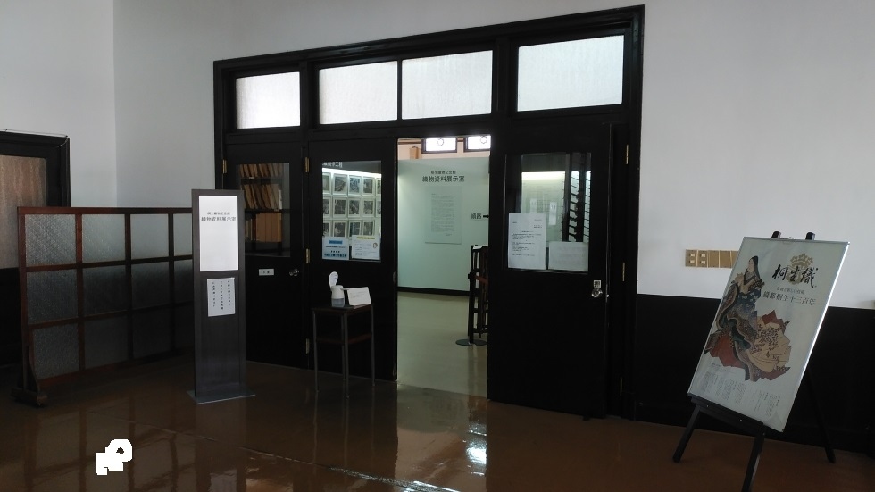 1階部分はカウンターがあって昔の銀行のような雰囲気。展示は古代から現代までの出来事をピックアップしており、郷土資料館的な位置づけだった。織物の町らしく、織物に関する展示も触れられていた。