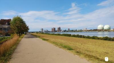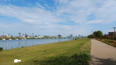 新潟駅から徒歩20分くらいのところにある公園。柳都大橋と朱鷺メッセの間に整備された緑地帯の公園。信濃川沿いにあり、ゆったりとした空間が広がっていた。