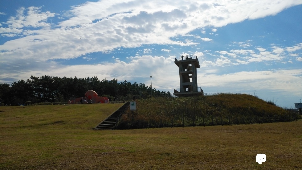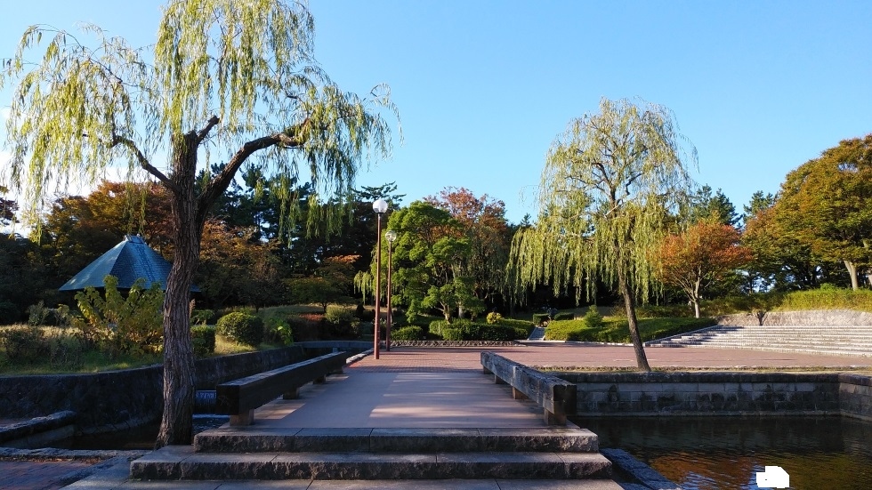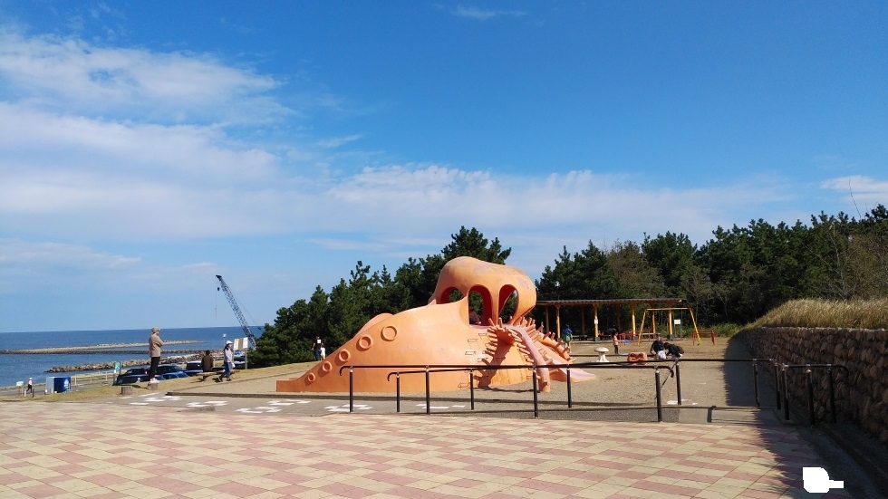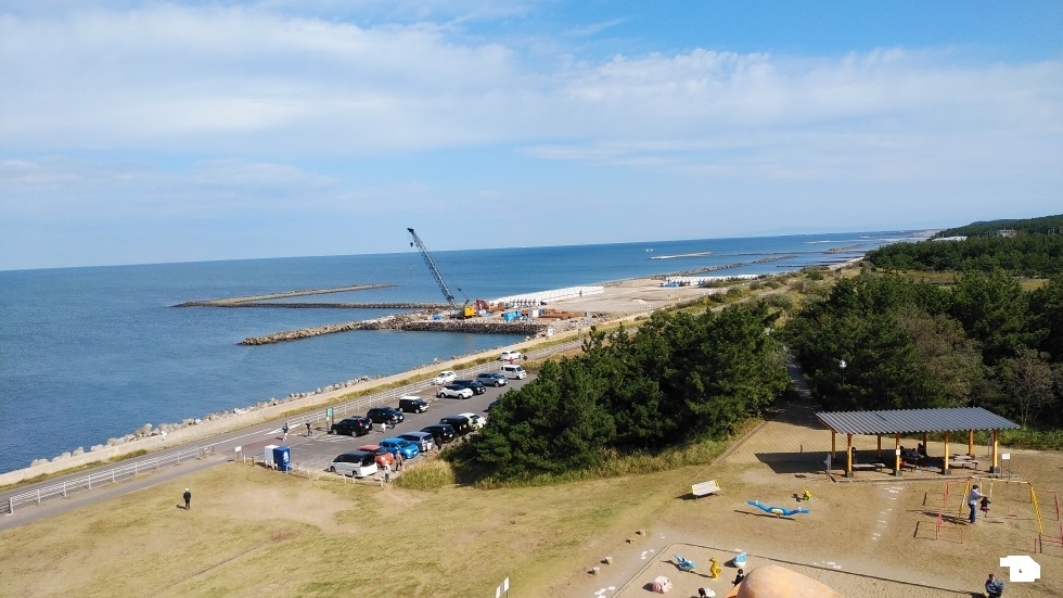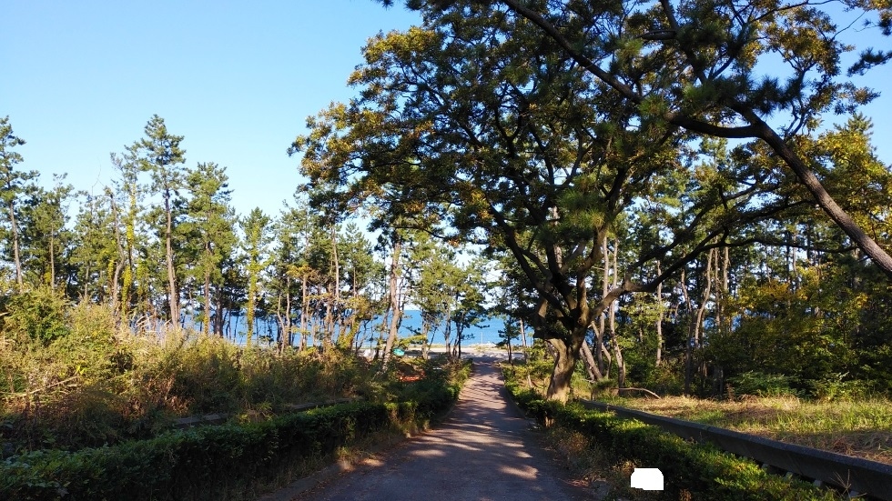 新潟駅から約3キロ、日本海沿いに延長5キロにわたってつづく公園。海岸沿いに整備されており、クロマツ林が広がっているのが特徴的。木々が生い茂っているのと海を挟んで交通量の多い通りが通っているため、あまり海の眺望は得られなかった。