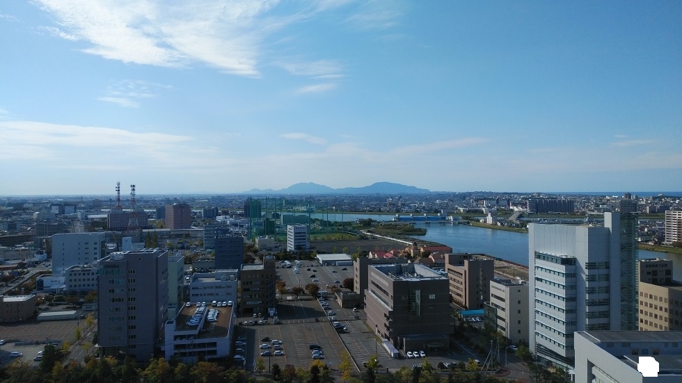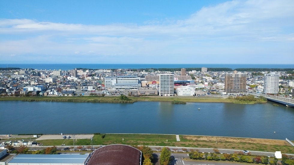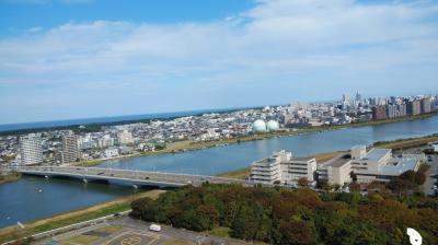 展望フロアは地上約67メートルで、日本海や信濃川の眺望がすばらしい。市街地の広がりも見られ、高層ビルであるネクスト21や朱鷺メッセなどの建物もはっきりととらえることができた。- 旅行時期