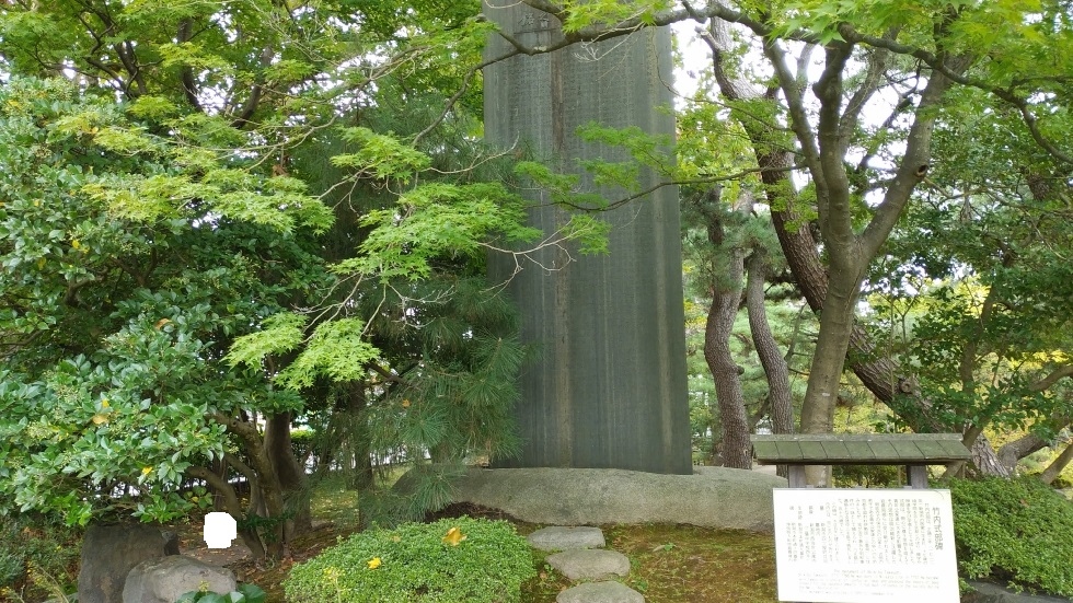 雰囲気のあるお店の脇に設置されている歌碑は立派な印象。歌碑は作詞家の画業50年を記念して、市長らが発起人となり設置されたとのこと。通りから少し入った目立たない場所にあるが、本人の希望によりこの場所に建てられたようだ。