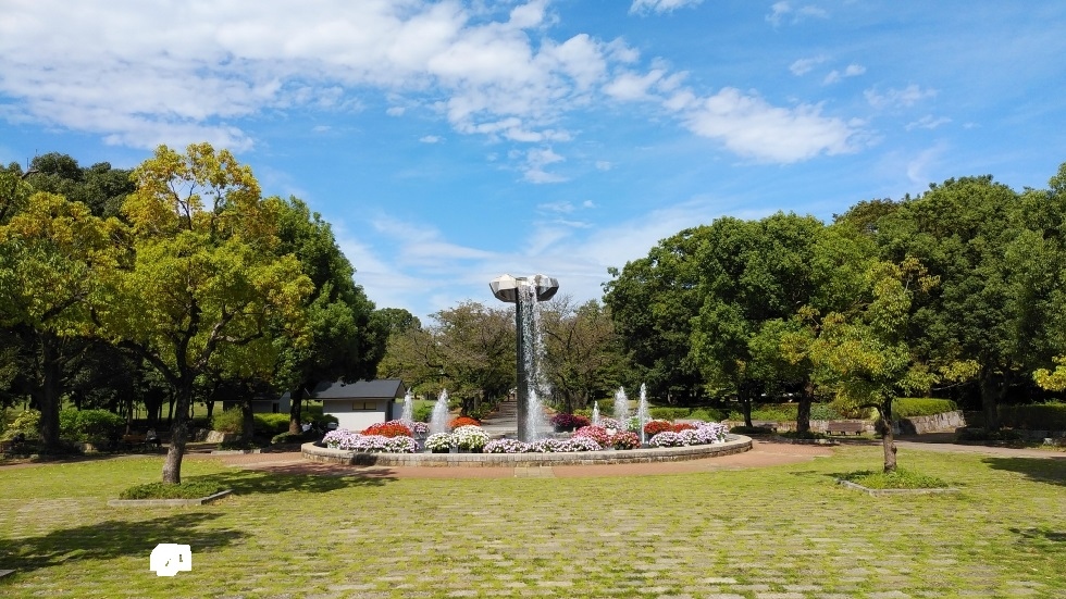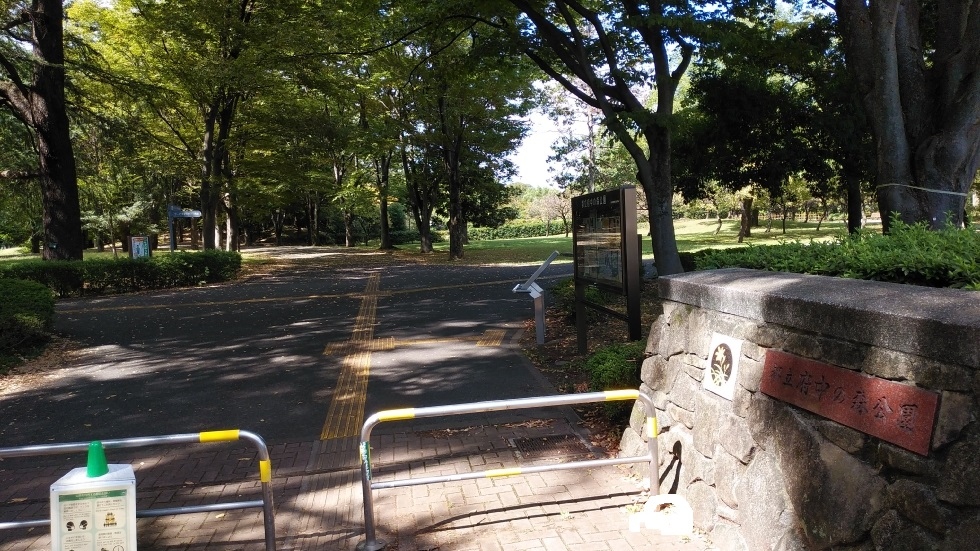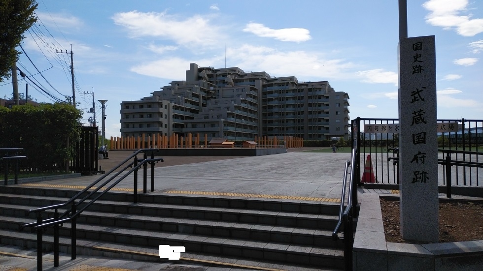 駅前ながら、広く開放感のあるスペースが広がっていた。かつて武蔵国司の居宅兼執務室(国司館)が置かれた場所。現在は柱のモニュメントなどが歴史を伝えている。