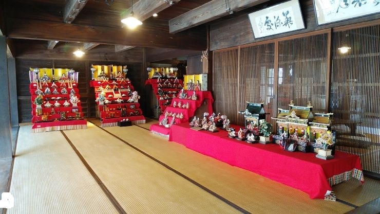 木材をふんだんに使った家屋でなかなか丈夫な雰囲気がした。1階部分はひな人形が飾られていた。2階も見学可能。レトロで落ち着く空間を堪能することができた。