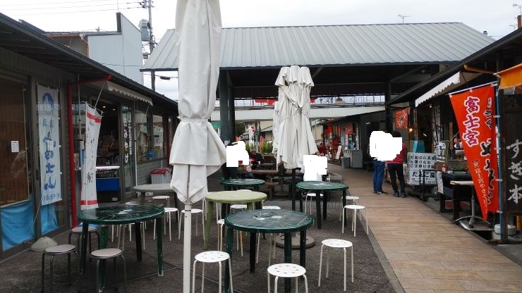 富士宮焼そばのお店が数店、静岡おでんなどのお店があり、いずれもテイクアウトでお店の前に設けられたベンチでいただくことができた。お土産屋さんもあり。