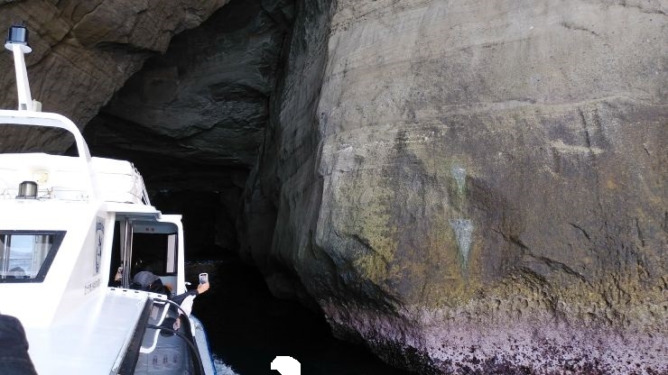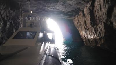 クライマックスは洞窟に入っているところ。天窓洞と呼ばれる、陸地に浸食した洞窟内を船は進んでいく。ここ通れるのといった狭いところを通行するので迫力があり楽しめた。