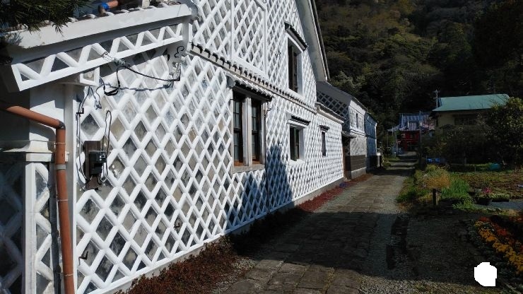 松崎バスターミナルから徒歩12分くらいのところにあるスポット。長八美術館バス停が近い。なまこ壁というと同じ県内では下田市が知られているが、伊豆半島西部の松崎町にも多く現存している。