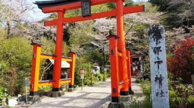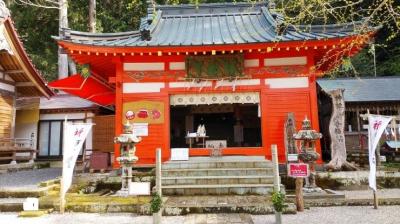 国道に面した鮮やかな赤い鳥居が印象的。境内は木々が多く自然環境豊かだった。社殿の建物も赤い色が印象的。屋根下の伊那下の彫刻が特徴的だった。
