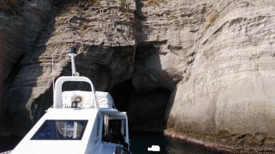 堂ヶ島を発着する遊覧船。複数のコースがあるが、洞窟めぐりが全行程20分でお手軽に海岸の風景が楽しめる。