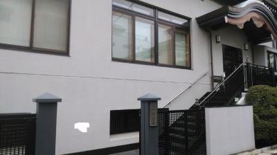 敷地いっぱいに建てられた本堂の建物は大き目で、屋根まわりなどお寺らしい雰囲気が感じられた。