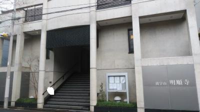 多くのお寺が立つ区画の中にある寺院。境内はなく、敷地いっぱいに本堂の建物が建てられていた。本堂は4階建てで大き目、都会の立地に合わせた現代的なデザインの建物だった。
