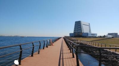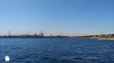 埋立地の広大な公園で、港湾部の工場などが見られる特徴的な風景を眺めることができた。