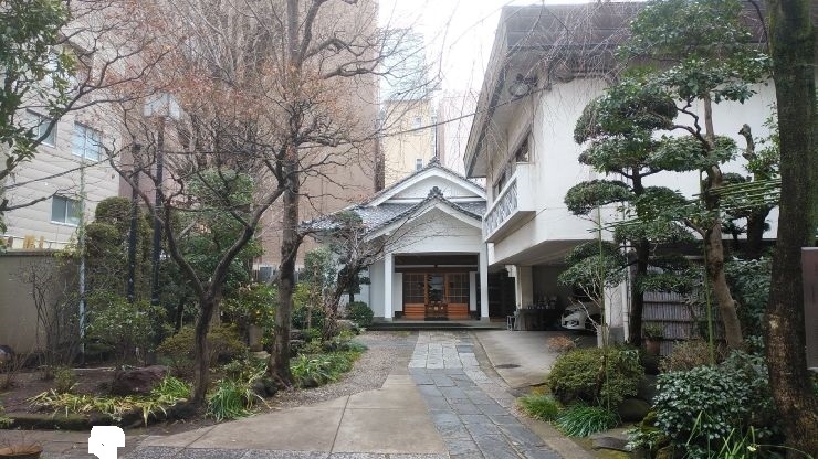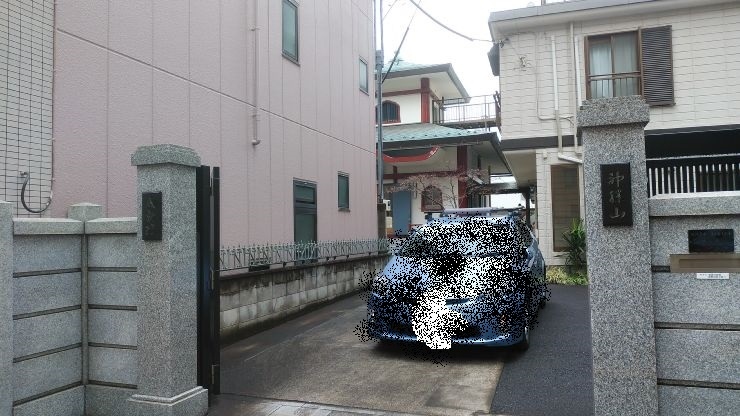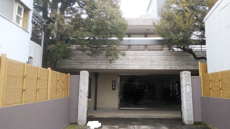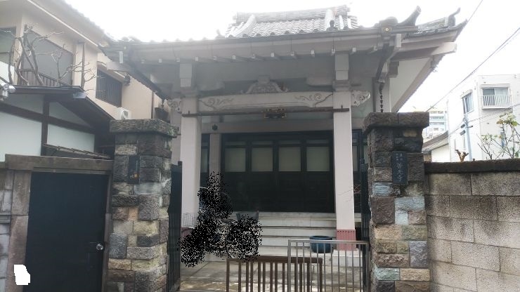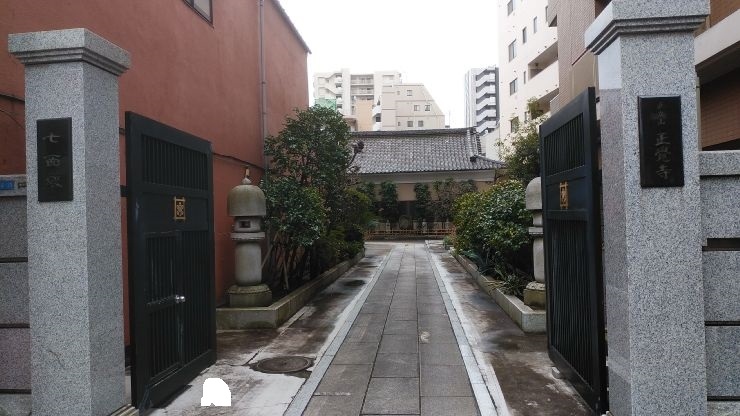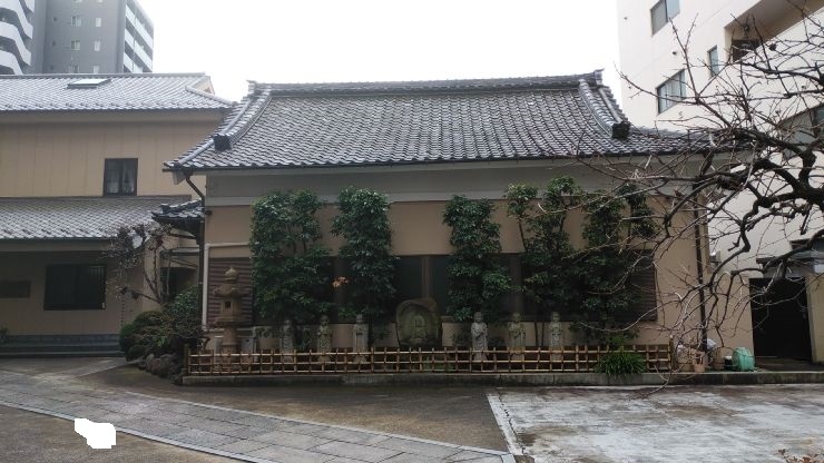 新堀通りと交わる、中小ビルや住宅が点在する通り沿いに入口がある。山門が奥に引っ込んでおり前が駐車場となっているので、何気なく歩いていると素通りしてしまいそうな印象。
