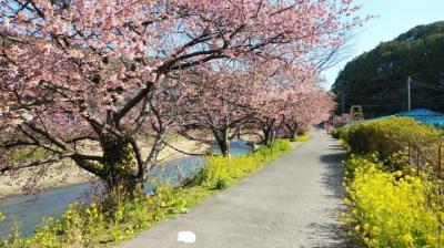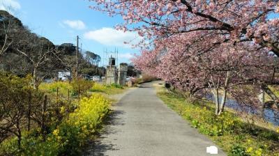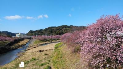 2月から3月にかけて南伊豆町で催されるイベント。伊豆急下田駅からのバスで日野バス停付近の菜の花畑から青野川に沿って約2.5キロの長さに渡る河津桜並木を散策することができた。