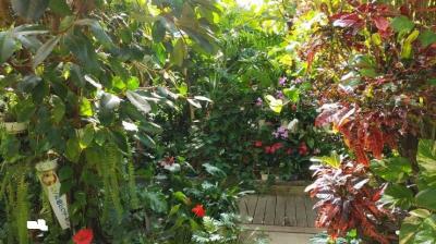特徴的なのは、熱帯植物が所狭しと展示されている点。これほどまでに密度の高い熱帯温室も珍しいのではと感じた。