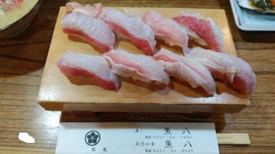 写真の金目鯛寿司は、握り8カンのほか、金目鯛のあら汁、牡蠣がセットになったもの。金目鯛はほんのり甘みを感じ、鮮度も高いようでおいしかった。