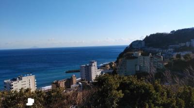 展望台からは山の斜面に広がる熱川温泉の町並みや海を隔てて伊豆大島が見られる。晴れた日は景色もきれいに見えた。