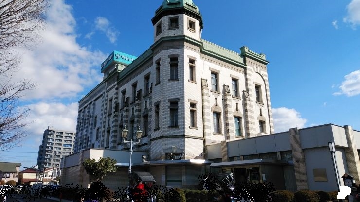大正7年に完成した、戦前の洋風建築物で蔵づくりの街並みとは別に歴史が感じられる空間になっていた。