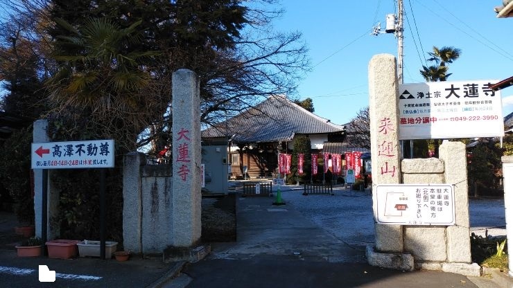 川越駅から約2.5キロ、徒歩30分くらいのところにある寺院。創建年代は不詳だが13世紀とのこと。