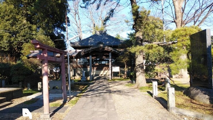 境内には1546年に北条氏と上杉氏が争った河越夜戦跡の石碑が置かれている。当時の激戦の面影がないくらいの落ち着いた環境だが、石碑の後ろの樹齢を重ねた木も味わいがあった。