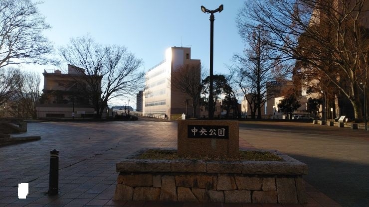 1777年に築城され、1872年には廃城され解体、その後大火や空襲などにより現在、遺構はほとんど見られなくなっている。中央公園内の脇に設けられた石碑がかろうじてここに本丸があったことを伝えていた。