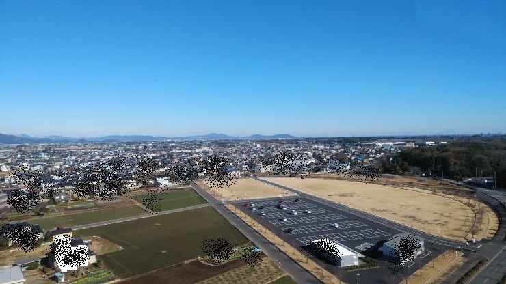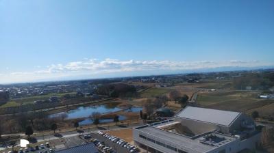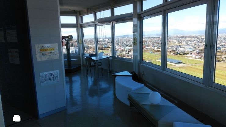 入場料は100円でエレベーターはお笑い芸人のロバートがナレーターを務め、多少のユルさが面白い。展望フロアからは360度の眺望で、周辺の田園地帯や上毛の山々が望めた。視界が最高に良い日は富士山や東京スカイツリーが見られるようだが、正午過ぎの時間で雲も広がっており、見つけることができなかった。