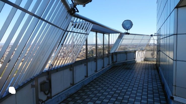 屋上の展望台があるのも特徴。風を感じながら周囲の景色を楽しむことができた。なお、望遠つきのカメラでの撮影はできないルールになっているので注意。- 旅行時期