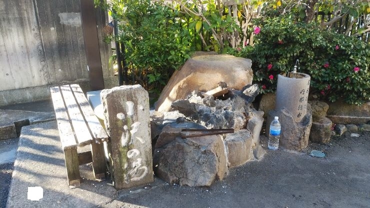 簡易的な屋根がかけられているモニュメント的な施設で、かつては岩がゴロゴロとした河原だったそう。