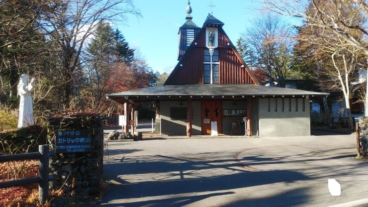 旧軽井沢バス停から徒歩5分ほどのところにある教会。1935年に設立された。チャーチストリート軽井沢の向かいにあった。
