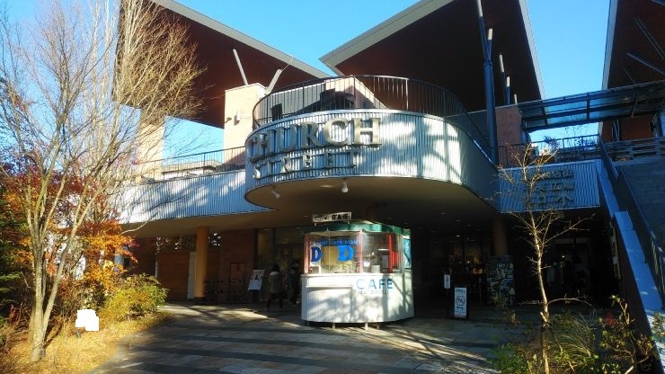 旧軽井沢銀座商店街と聖パウロカトリック教会の間に建つショッピングモール。数多くのテナントが入居していた。
