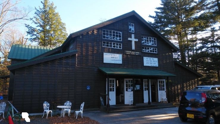 旧軽井沢バス停から徒歩12分くらいのところにある教会。軽井沢最古の教会で現在の建物の原型は1895年に造られた。そのためか木造の建物は少しだけ和の雰囲気も感じられる。