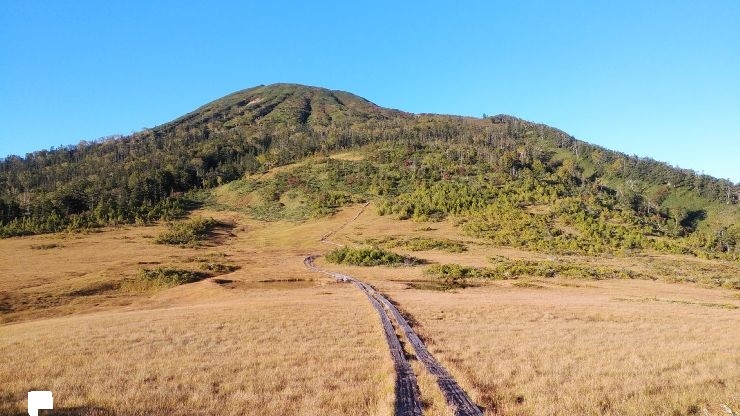 これまでの急斜面がゆるみ、木道の緩やかなコースとなるので、足腰の負担が軽減できるのが良い。