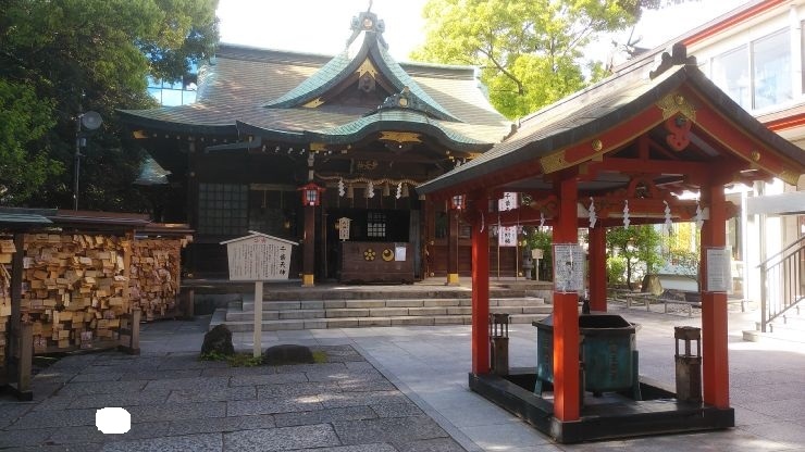 町なかに溶け込んでいるかのように通りに面して入口があった。境内はそれほどの広さはないが本殿が堂々と鎮座しており立派だった。また、大きなカエルの像が見られ、他にはない珍しいものだと感じた。- 旅行時期