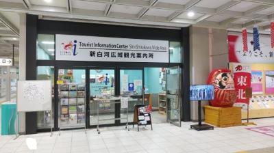 東北新幹線新白河駅構内にある観光案内所。カウンター席に各種パンフレットを設置。改札を出てすぐの立地は観光情報の入手には最適な場所だと感じた。白河市内の観光施設は主にとなり駅の白河駅周辺や駅から離れた場所にある。観光する場所によっては、となりの白河駅にも観光案内所を利用するなど、目的地にあわせた利用方法があると感じた。