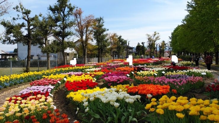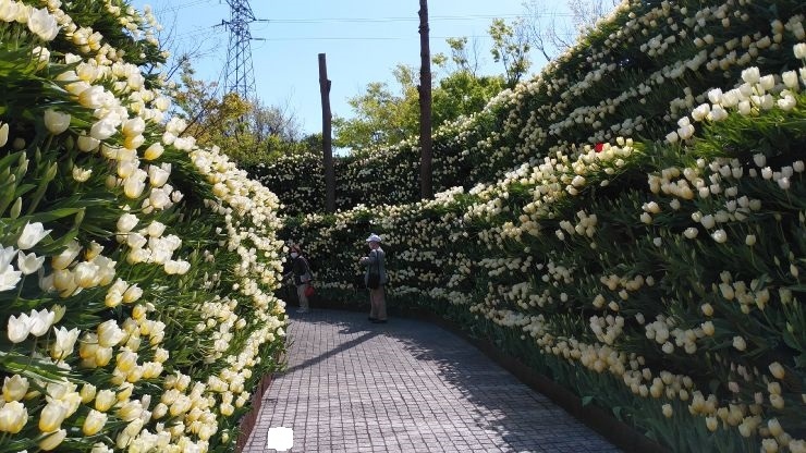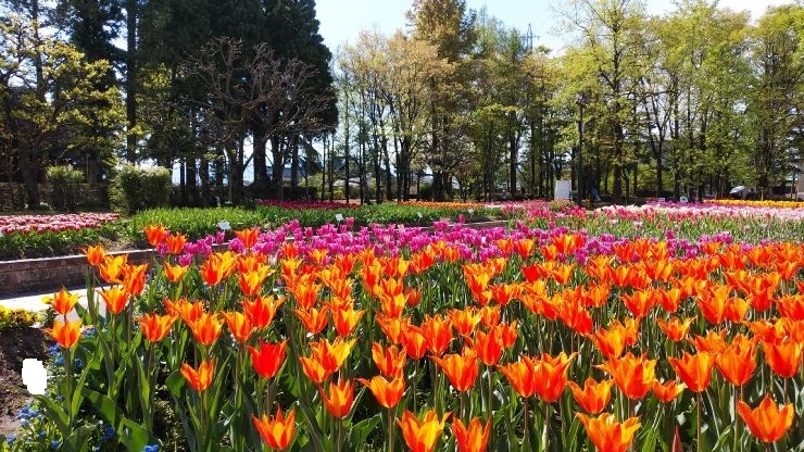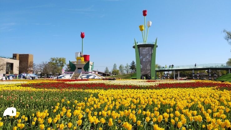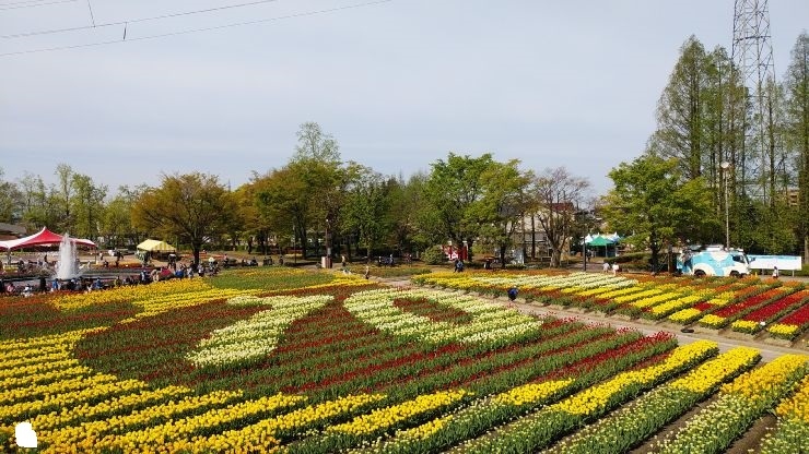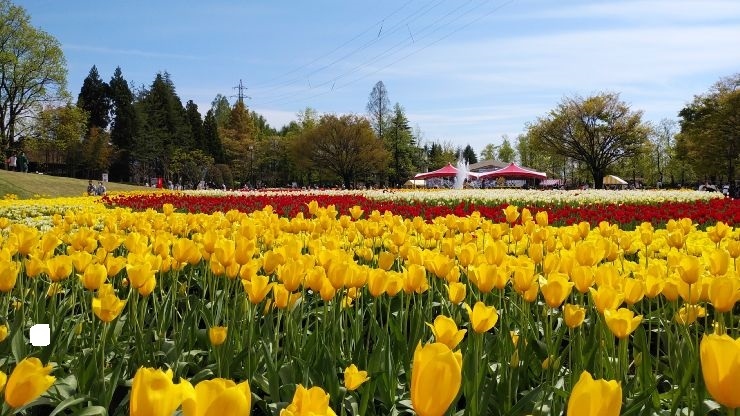 チューリップタワー前の大花壇や花の大谷、水上花壇などあらゆるところで色とりどりのチューリップが咲いておりきれいだった。とにかく数がものすごく、迫力があった。