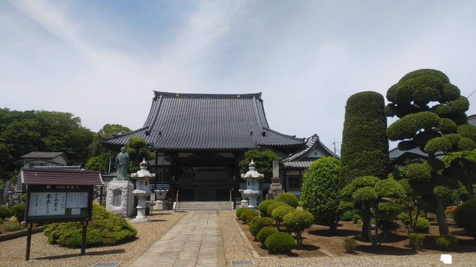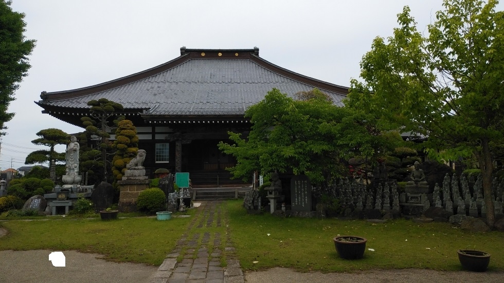 駅から近い住宅街にあり、入り口は県道に面している。境内はコンパクトで主に駐車スペースになっていた。本堂の建物もコンパクト。昭和60年に建築されたものだそうで、比較的新しめの建物だと感じた。- 旅行時期