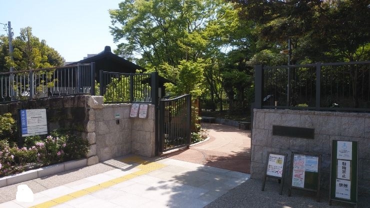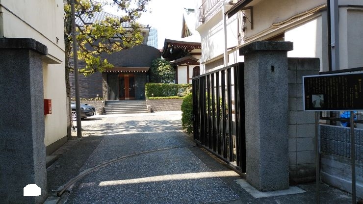 三笠ビル商店街の中に寺院への道があり、ちょっと独特な雰囲気。商店街の入るビルを出ると階段を上がっていく。150段以上の階段を上がると立派な山門があった。