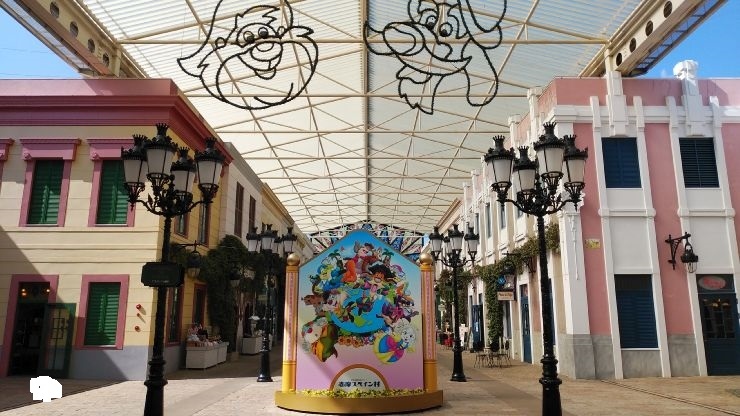 ゲートを通過するとスペインの町並みをイメージした建物が並び、異国情緒を感じた。