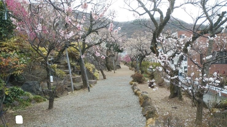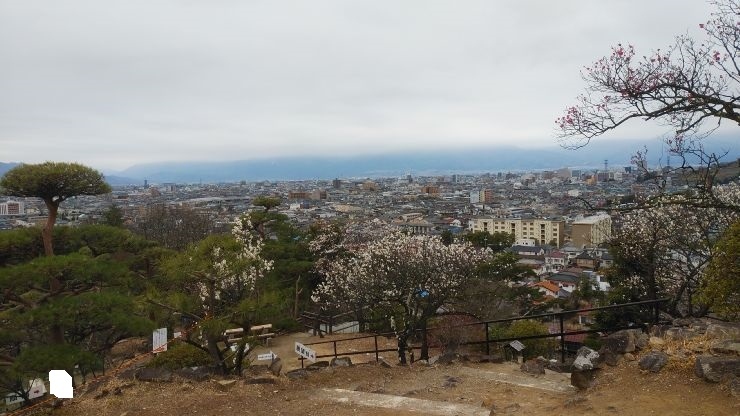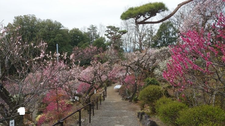 斜面の地形を利用した散策路が設けられ、梅の花の中を歩くことができるので、春の訪れを感じられるスポットだった。高台からは市街地の眺望も得られた。快晴の日を狙って訪れたい。- 旅行時期